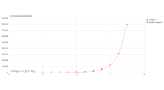 Demonstrates the use of TrendLineExponential from within ForecatEngine which find the best fitting exponential curve to sets of data.