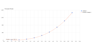Demonstrates the use of TrendLinePower from within Forecasting which find the best fitting power curve to sets of data.
