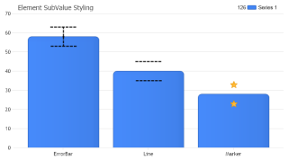 Demonstrates using subvalues to draw limit lines above a group of bars.
