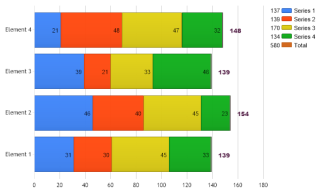 Demonstrates how to overlay a styled line or bar on a stacked bar chart.