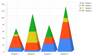Demonstrates stacked Pyramids in 3D.