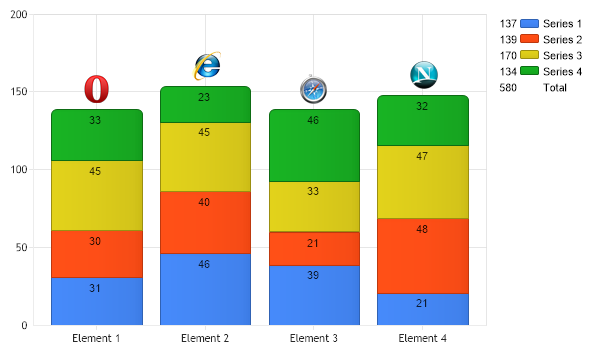 // Demonstrates how to label the total values of column stacks.
