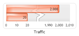 Demonstrates a horizontal linear gauge using shading effect Four and a scale break.