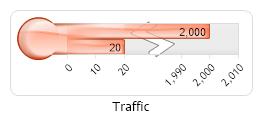Demonstrates a horizontal linear gauge using shading effect one, an axis marker and element marker range tick.