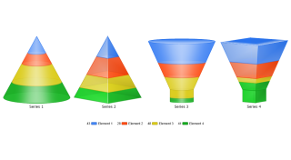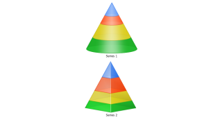 Demonstrates multiple series types in 3D with donut, funnel, pyramid.