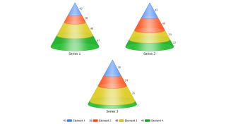 Demonstrates the Multiple chart type in 3D with funnel spacing.