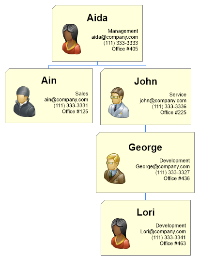 ' Demonstrates usage of an organizational chart using custom attributes populated from an existing user table by adding instance and parent IDs to establish the org hierarchy.