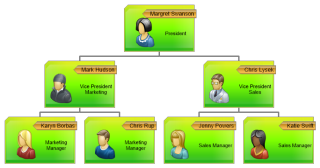 Demonstrates an organizational chart with vertical leaf point layout and images in nodes.