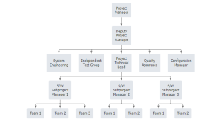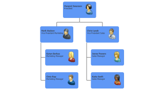 Demonstrates an organizational chart with vertical layout of elements due to space constraints.