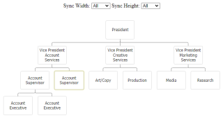 Demonstrates an organizational chart styled to look like a flow chart with interactive hierarchical path highlighting.