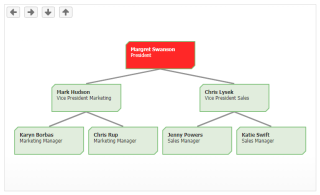 Demonstrates an organizational chart with interactive node level highlighting and selection.