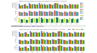 Demonstrates the usage of color synchronization between multiple chart areas for the same elements.
