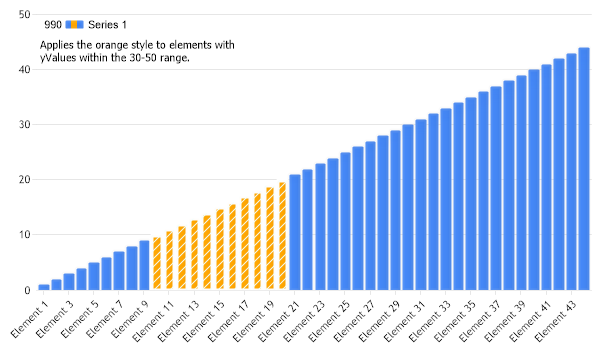 Chart.ChartArea.Label.Text = "Applies the orange style to elements with \nyValues within the 30-50 range.";