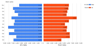 Demonstrates a pyramid chart types created using 2 chart areas.