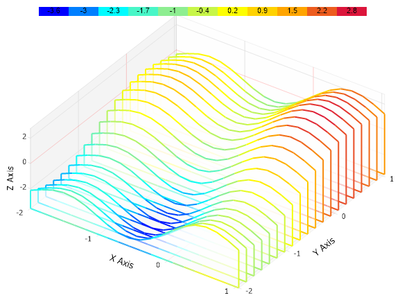 // Demonstrates a 3D surfaceX chart with DrawToFloor.