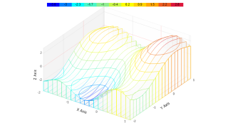 Demonstrates a 2D surface chart with contour lines.