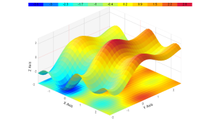 Demonstrates a 3D surfaceX chart with DrawToFloor and a 2 color smartPalette.